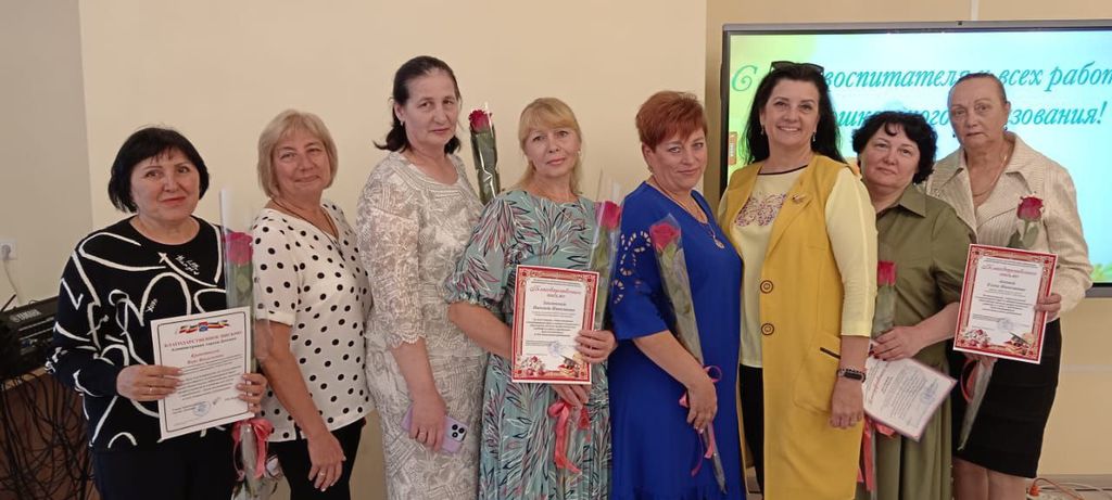 По доброй традиции в честь профессионального праздника большая группа педагогов получила заслуженные награды — Почетные грамоты, Благодарственные письма за значительные успехи в воспитании и обучении подрастающего поколения, а так же на мероприятии наградили победителя областного конкурса "Лучший педагогический работник дошкольного образования Ростовской области" 2025 года - Сотникову Надежду Алексеевну.