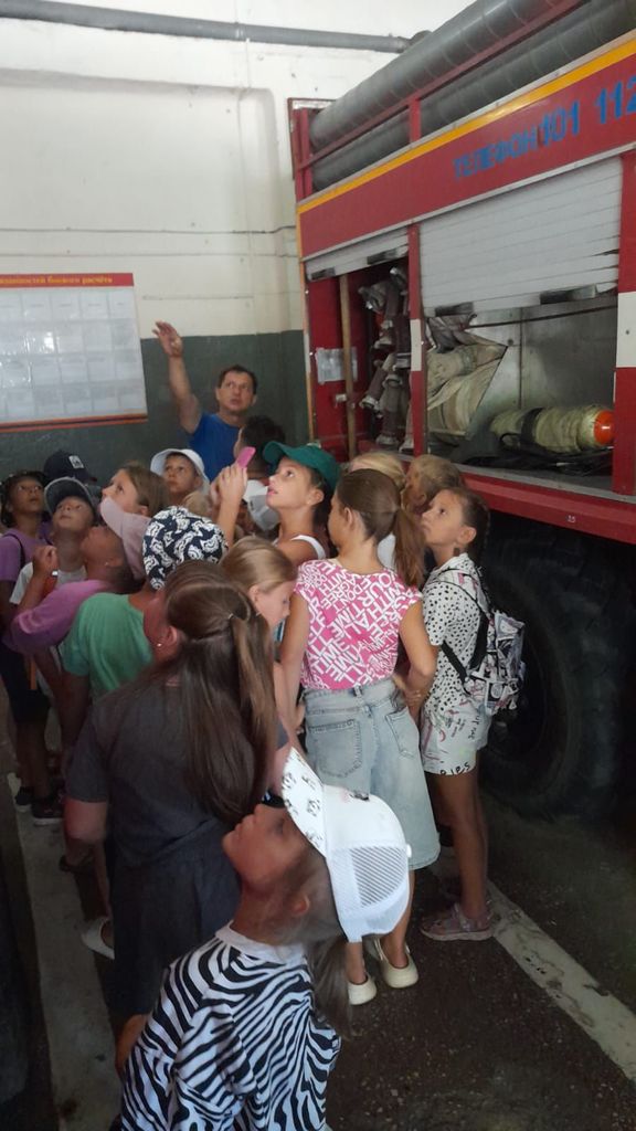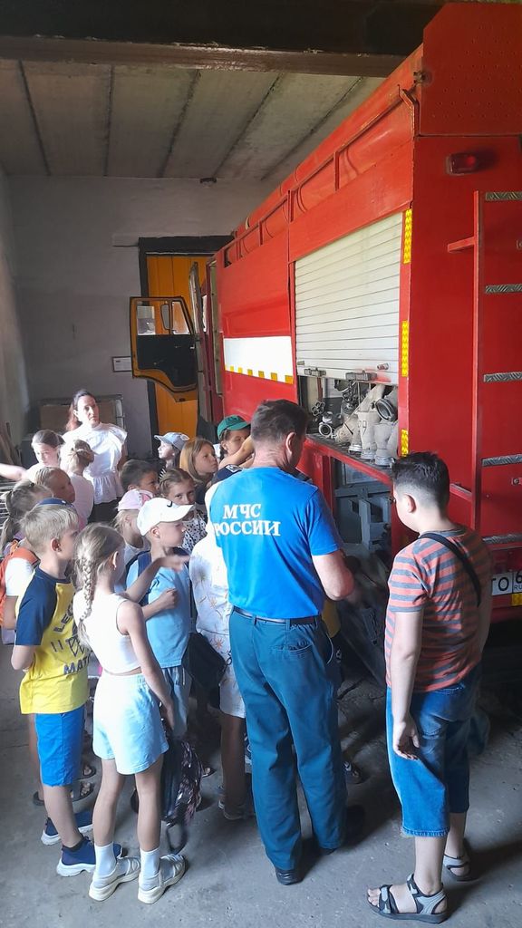 Одно из таких мероприятий прошло накануне в 43 Пожарно-спасательной части 4 ПСО ФПС ГПС ГУ МЧС России по Ростовской области. Ахмадиев Павел Рафильевич - командир отделения, встретил юных гостей, ребят летней оздоровительной площадки Дома детского творчества и провел увлекательную экскурсию по пожарной части, рассказал ребятам о создании пожарной охраны в городе Донецке.